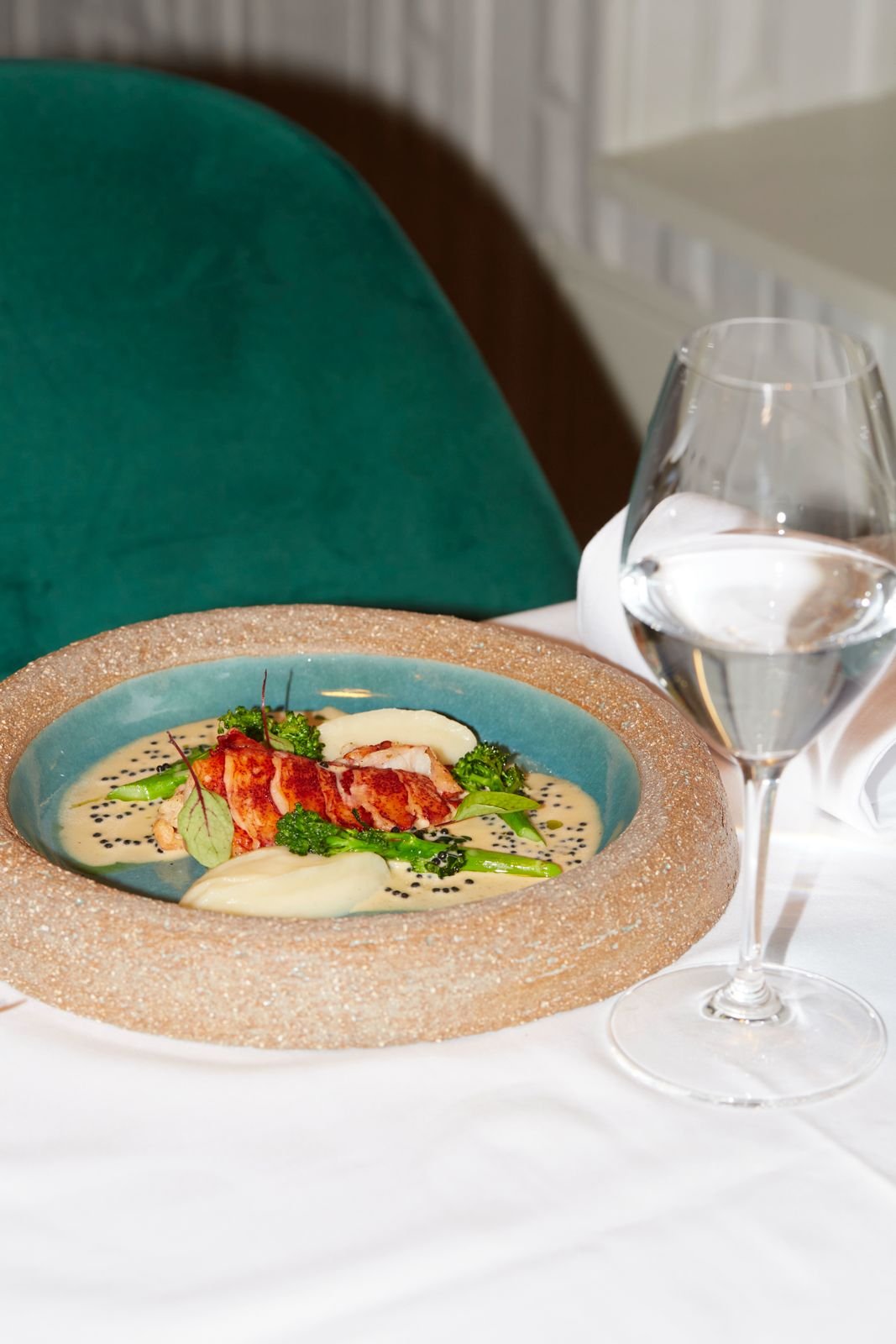 Cola de bogavante à la beurre blanc de Champagne, bimi y celeri